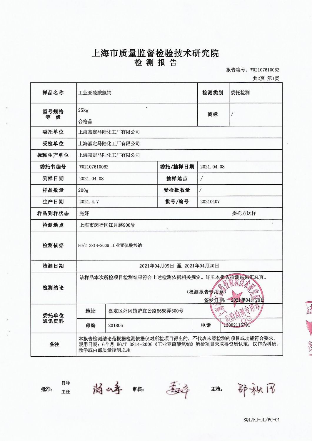 工業(yè)亞硫酸氫鈉25公斤檢測報(bào)告
